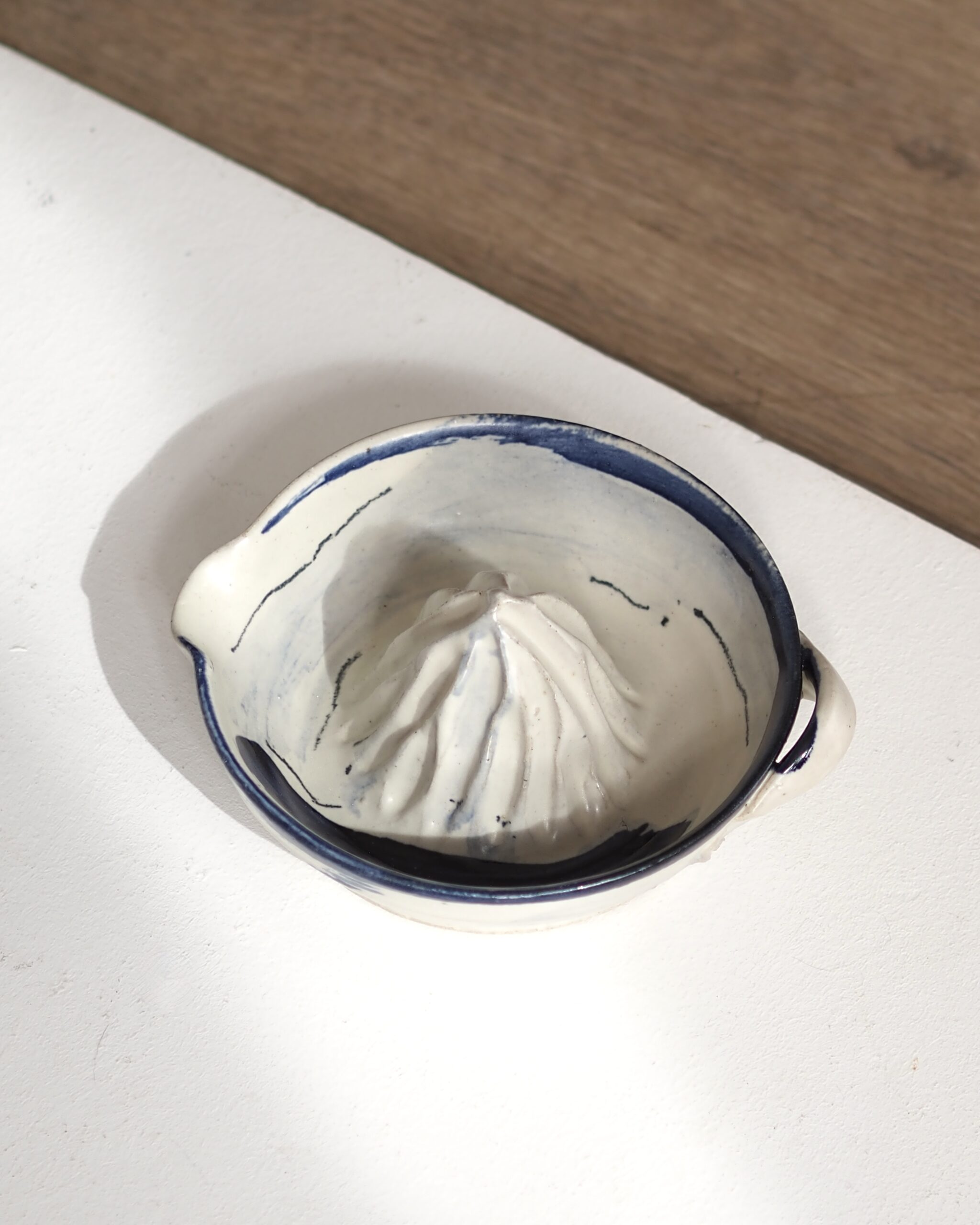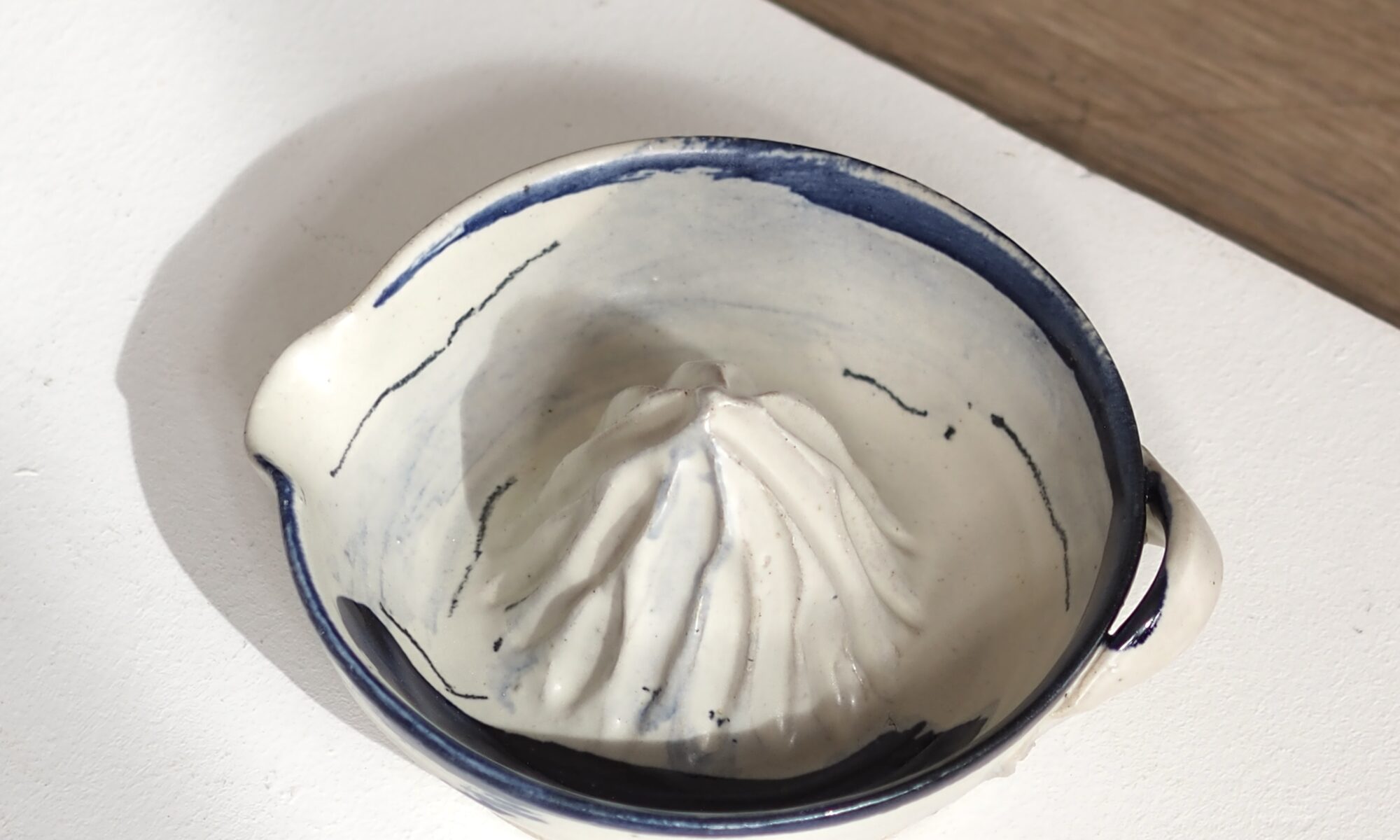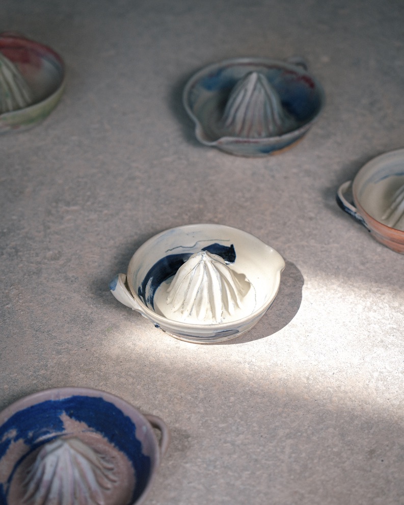 presse-agrumes en grès recyclé, engobe, émail.